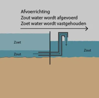Deze stuwen voeren het zoute water af in plaats van het zoete water, waardoor er meer zoet water wordt vastgehouden in het gebied.