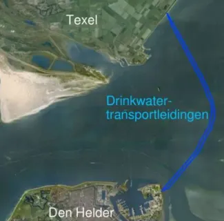 De Oostelijke zinker die drinkwater van Den Helder naar Texel transporteert wordt vervangen. Deze zinker is in 2013 gebroken en vervolgens gerepareerd.